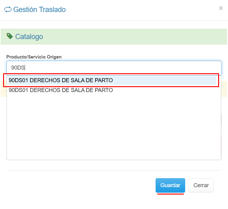 3. Selecciona la casilla de verificación Eliminar Producto/Servicio Origen. Haz clic en el botón Guardar.