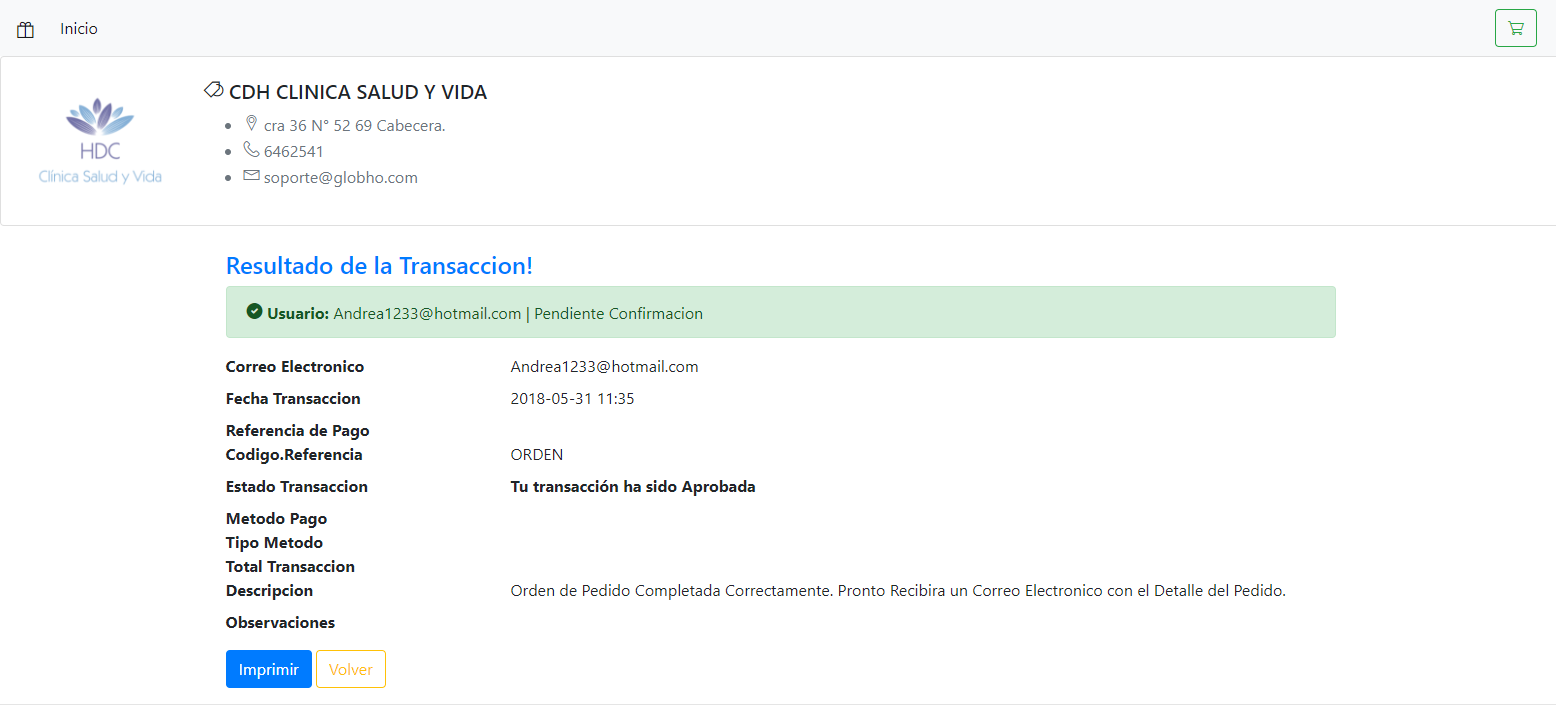 Una vez terminada la Solicitud, el sistema enviará un correo con los datos de la misma al mail del Cliente, con copia al correo de la empresa registrado en Configuración para verificar la disponibilidad del Servicio en la fecha solicitada y próximante realizar la Agenda. |