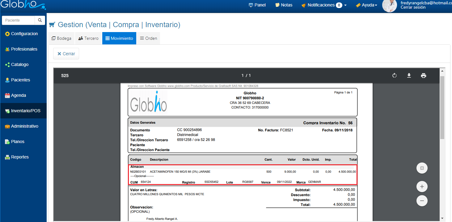 Los datos de Registro Sanitario, Lote y Fecha de Vencimiento, se visualizan también en la Impresión del Comprante, para este proceso haz clic en .