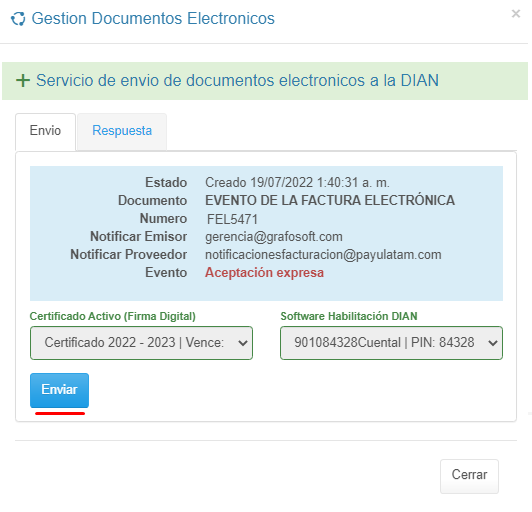 1. Luego de Recepcionar la Factura, haz clic en el Lápiz ubicado en la columna Evento Acepta.