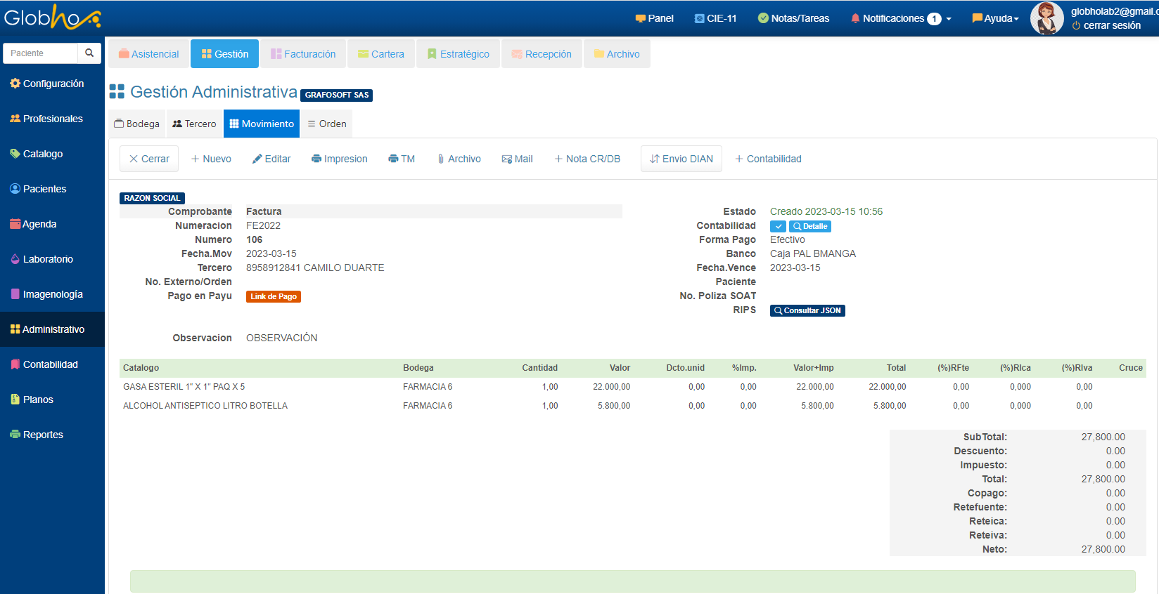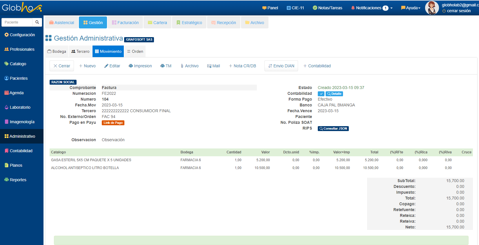 5. Verifica los datos de la factura y realiza el proceso de Envío DIAN. Ver aquí