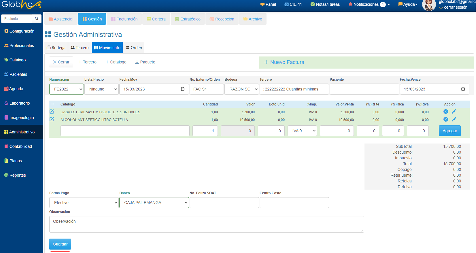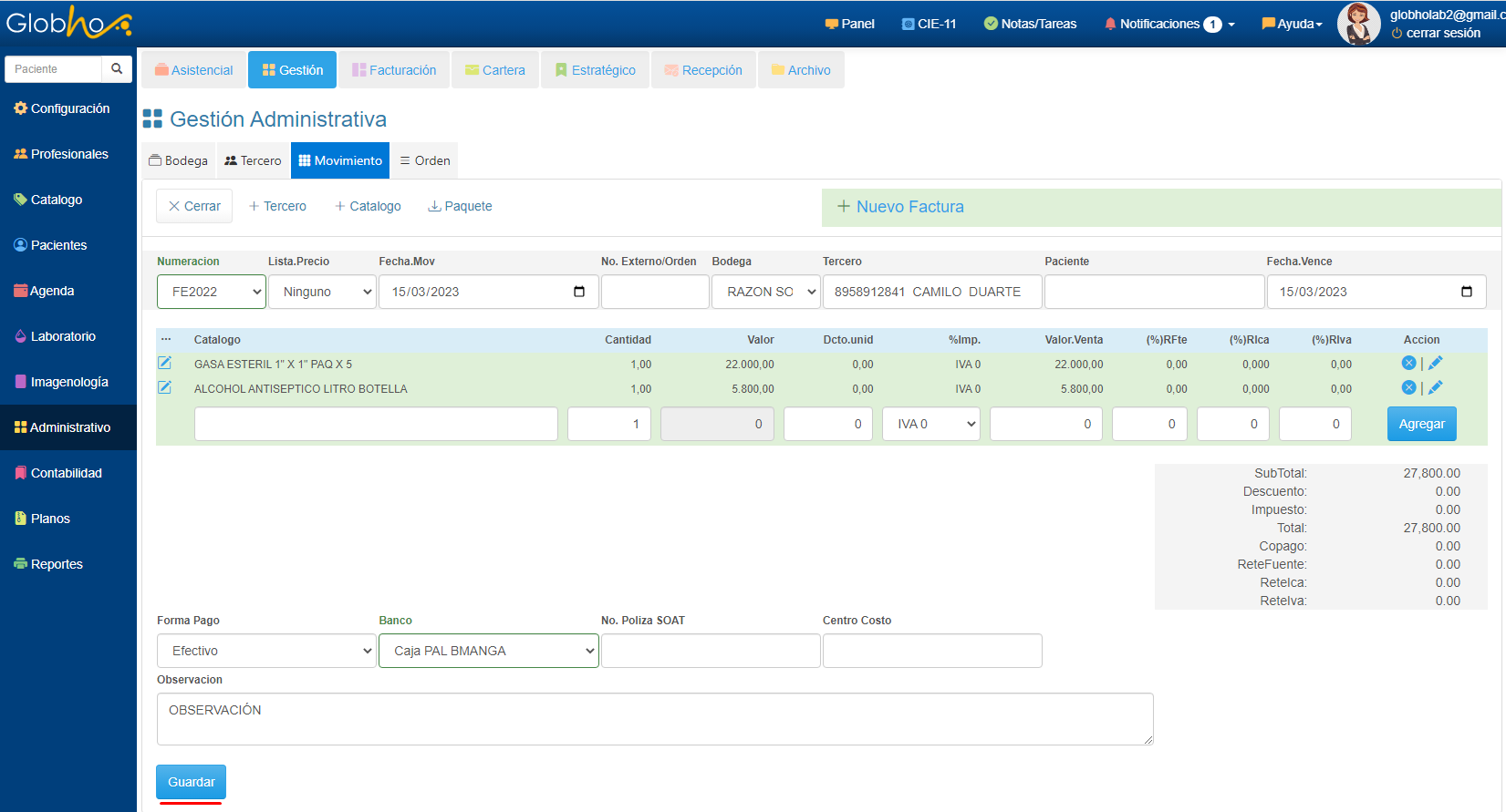 3. Diligencia el formulario con los datos según lo requerido y haz clic en el botón Guardar.