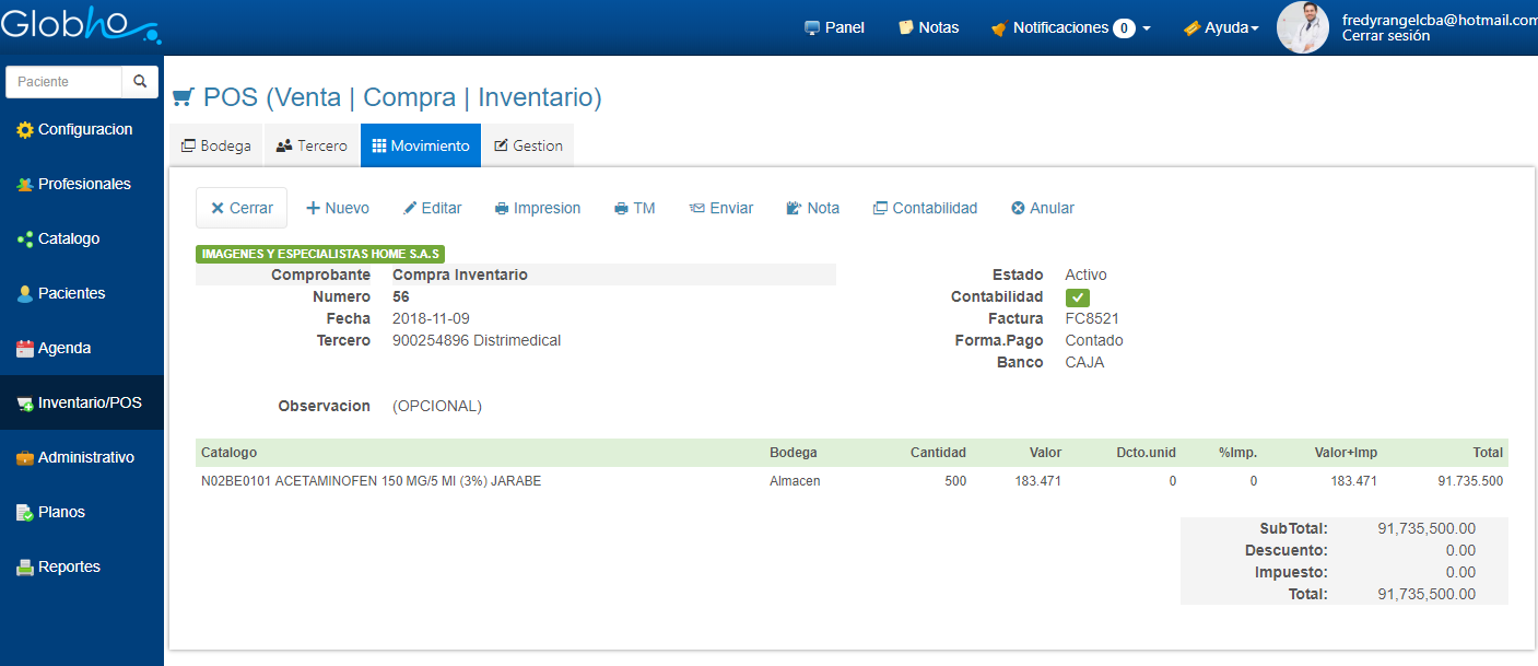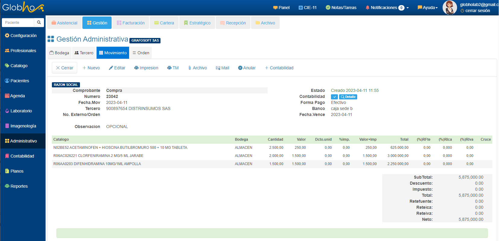 4. Digita datos generales del comprobante y agrega los items de la Compra.