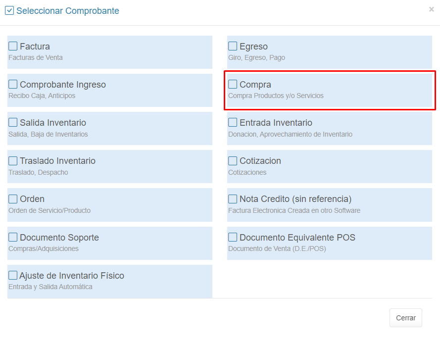 Debes tener en cuenta que este comprobante lo puedes usar para crear Facturas de Compra de las cuáles tengas su respectivo soporte.