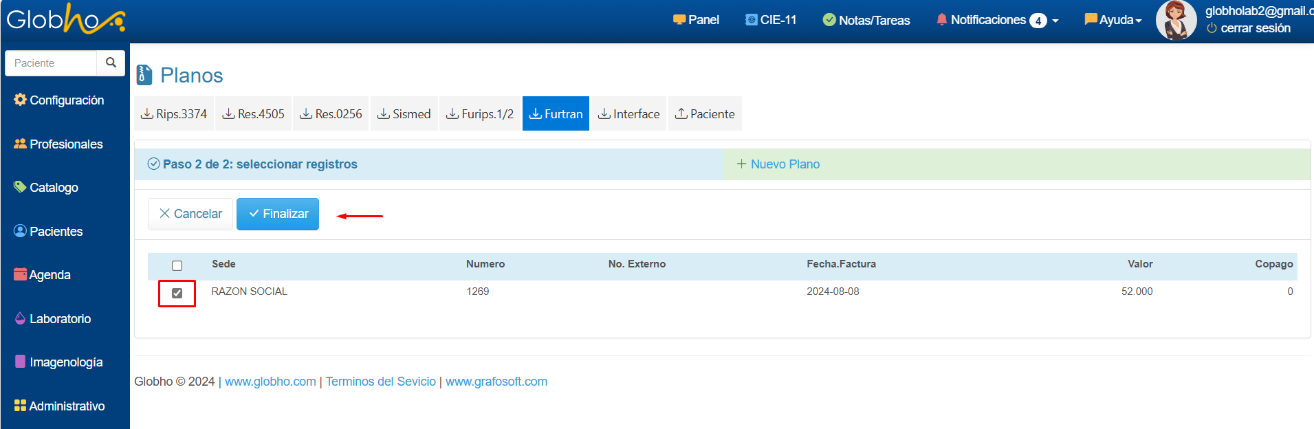 3. Selecciona la factura y haz clic en el botón finalizar.