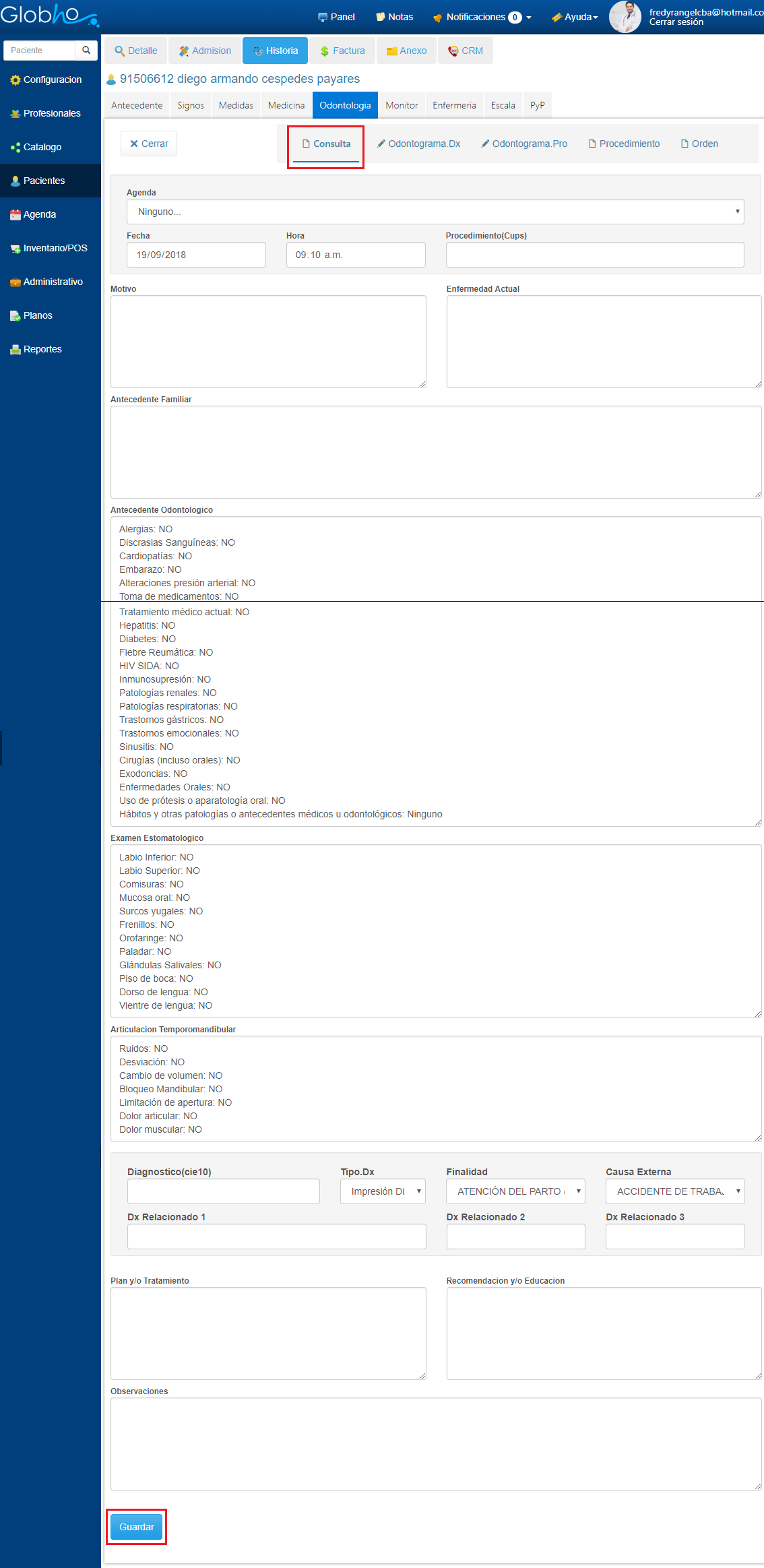 2. En el Detalle del Tratamiento, haz clic en la sección Consulta. Diligencia los datos del Formato y al finalizar haz cilc en el botón Guardar.