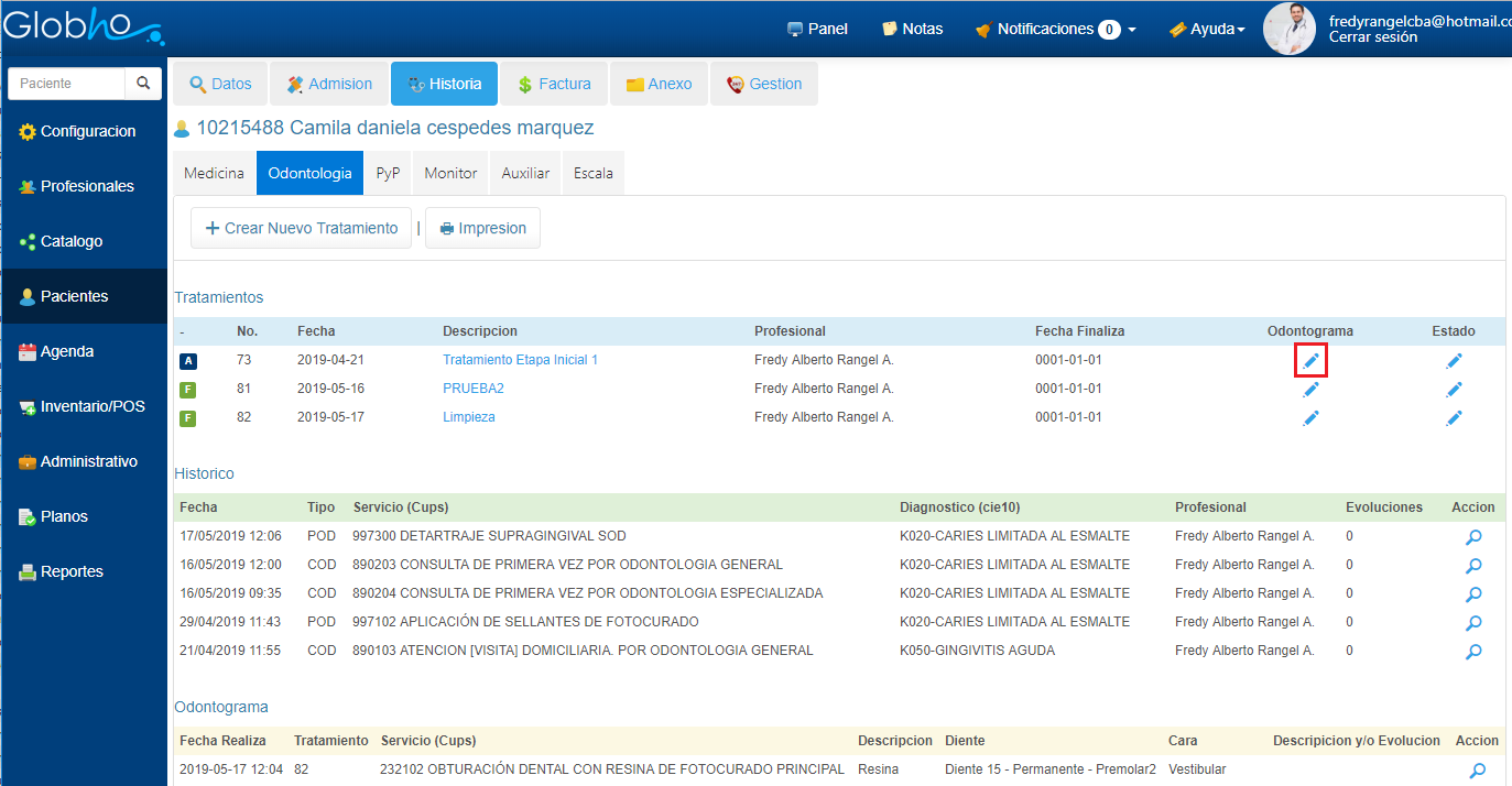 1. Ingresa al Detalle del Tratamiento, haciendo clic en el icono en forma de Lupa al final del registro.