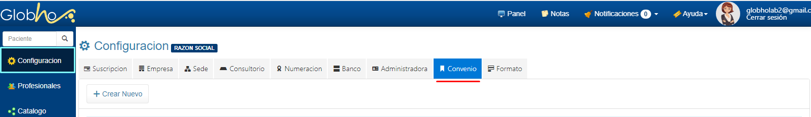 1. Selecciona Configuración en el Menú Principal y Haz clic en la sección Convenio.