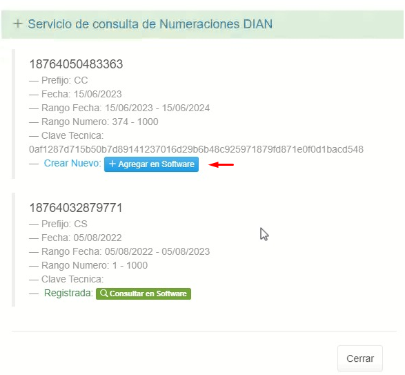 2. Una vez se visualicen los datos asociados en la plataforma de la DIAN, haz clic en el botón + Agregar en Software.