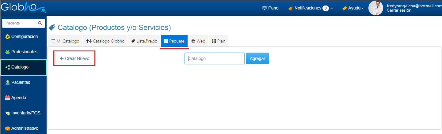 1. Ingresa al módulo Catálogo y haz clic en la pestaña Paquete.