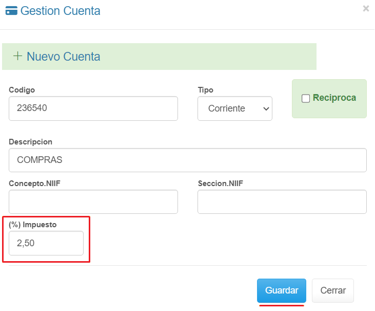 ✓ Para que el cálculo de la retención sea automático en contabilidad, incluya la tarifa en la respectiva cuenta contable. Ver aquí