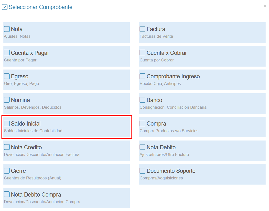 2. Selecciona el comprobante Saldo Inicial.