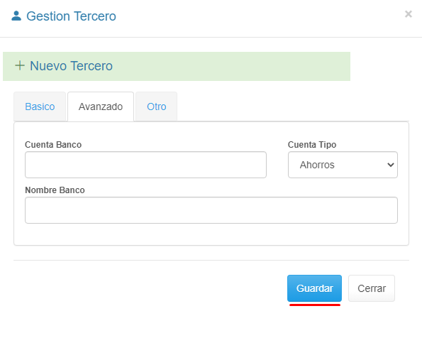 Avanzado: Secci贸n para registro de Datos Generales del Tercero.
