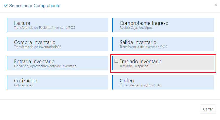✓ Bodega: Bodega Origen (Lugar de salida)