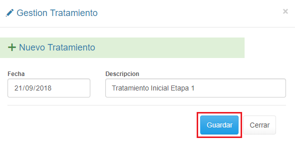 3. Digita el nombre del Tratamiento y haz clic en Guardar.