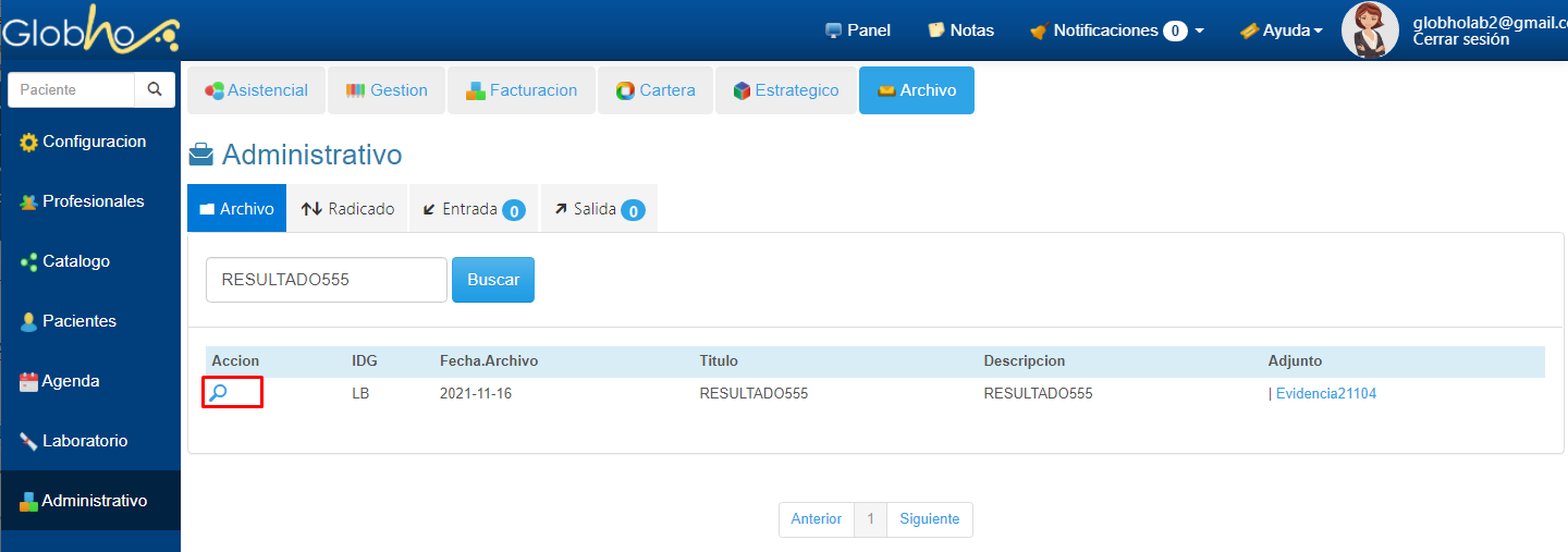 3. Haz clic en el botón Lupa para ingresar al del Archivo.