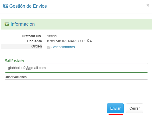 2. Haz clic en el botón Enviar.