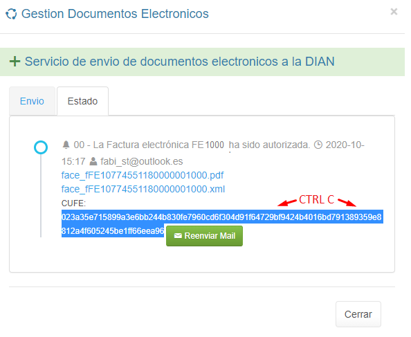 3. Copia el código CUFE.