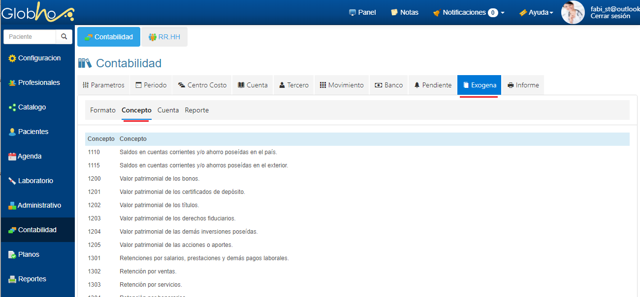 3. Haz clic en Concepto para visualizar los Conceptos disponibles.