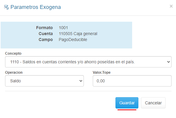 5. Ingresa los Parámetros requeridos en el formulario y haz clic en el botón Guardar.