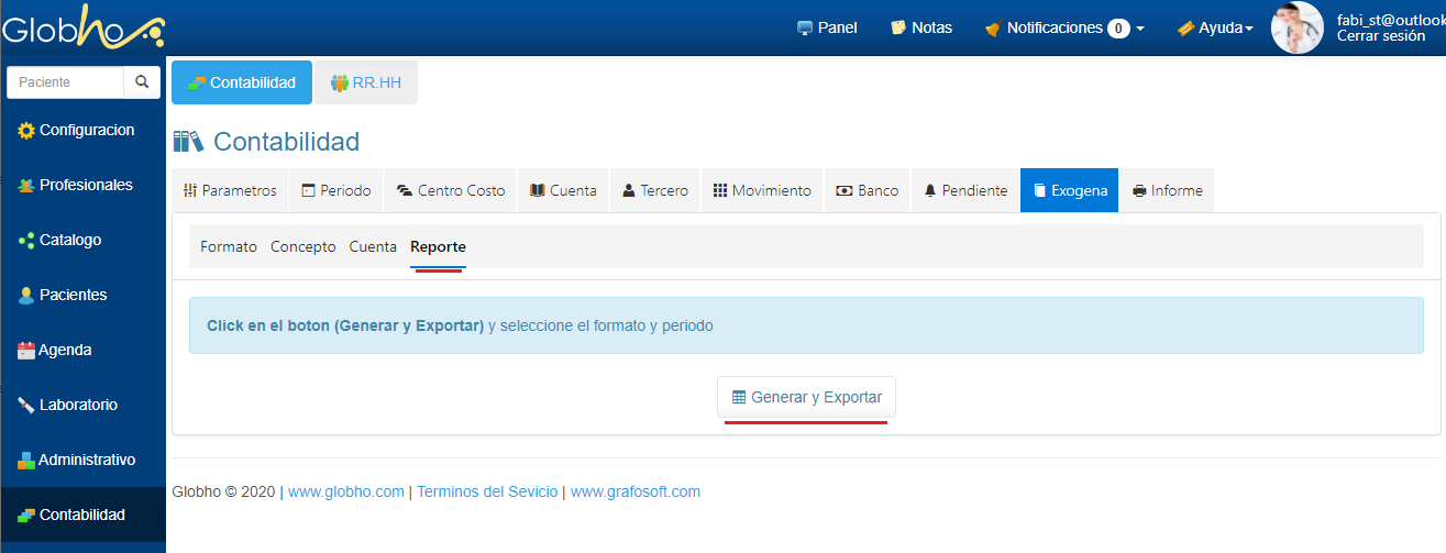 6. Para generar el Reporte haz clic en Reporte y a continuación selecciona Generar y Exportar.