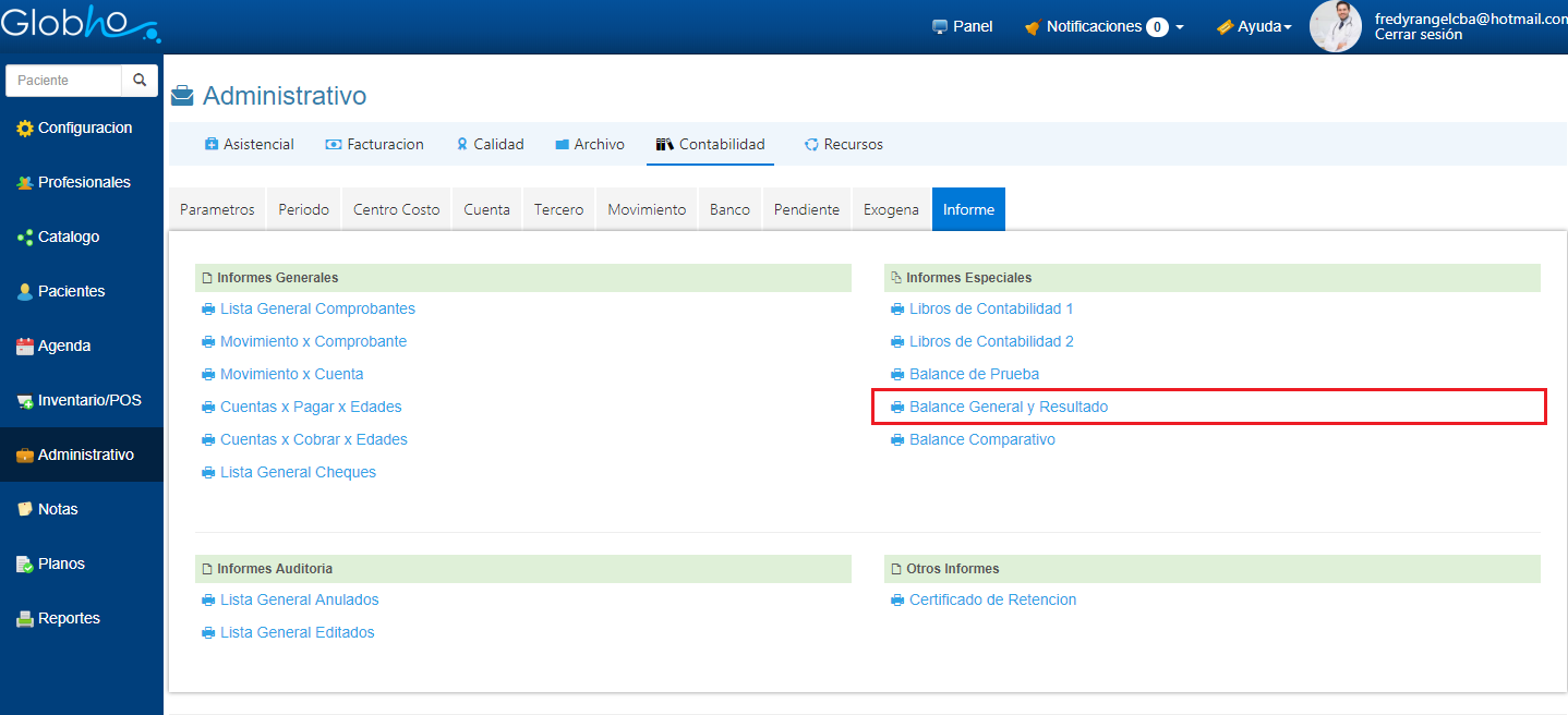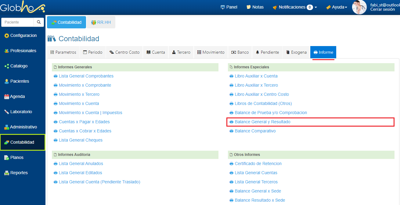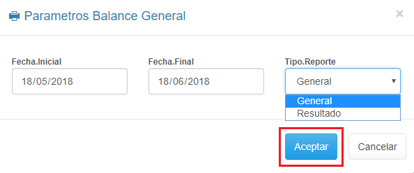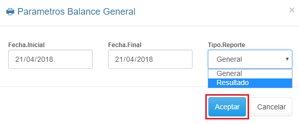1. Haz clic en el Informe Balance General y Resultado.