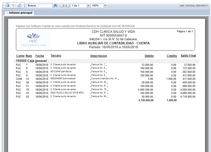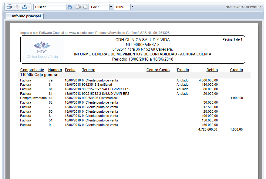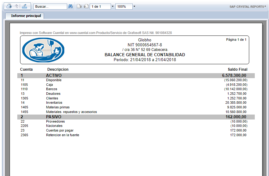 El Informe se visualiza de la siguiente manera: