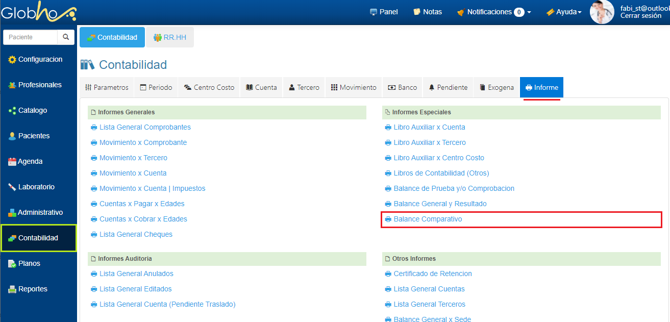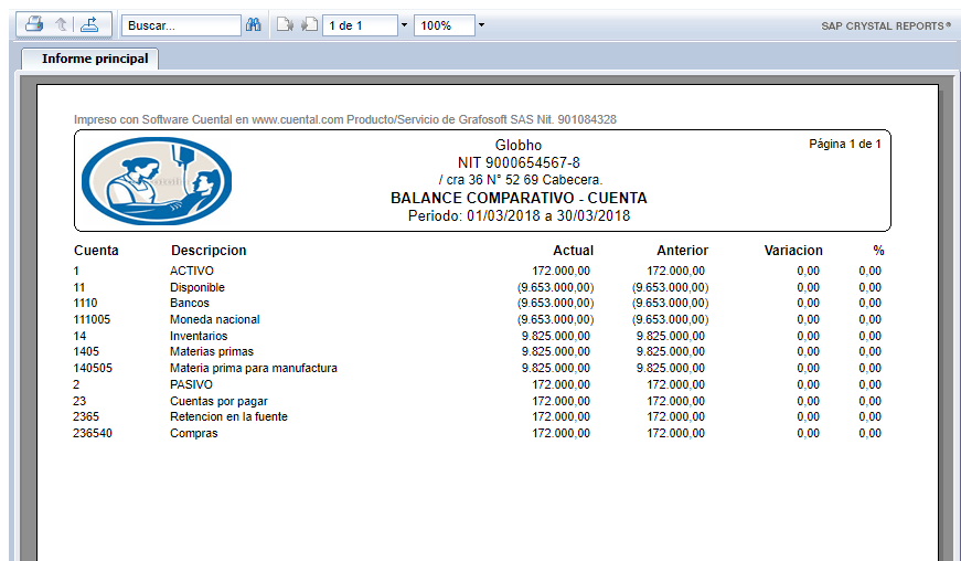 1. Haz clic en el Informe Balance Comparativo