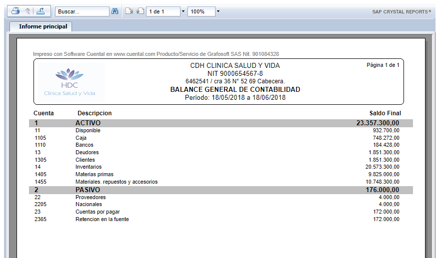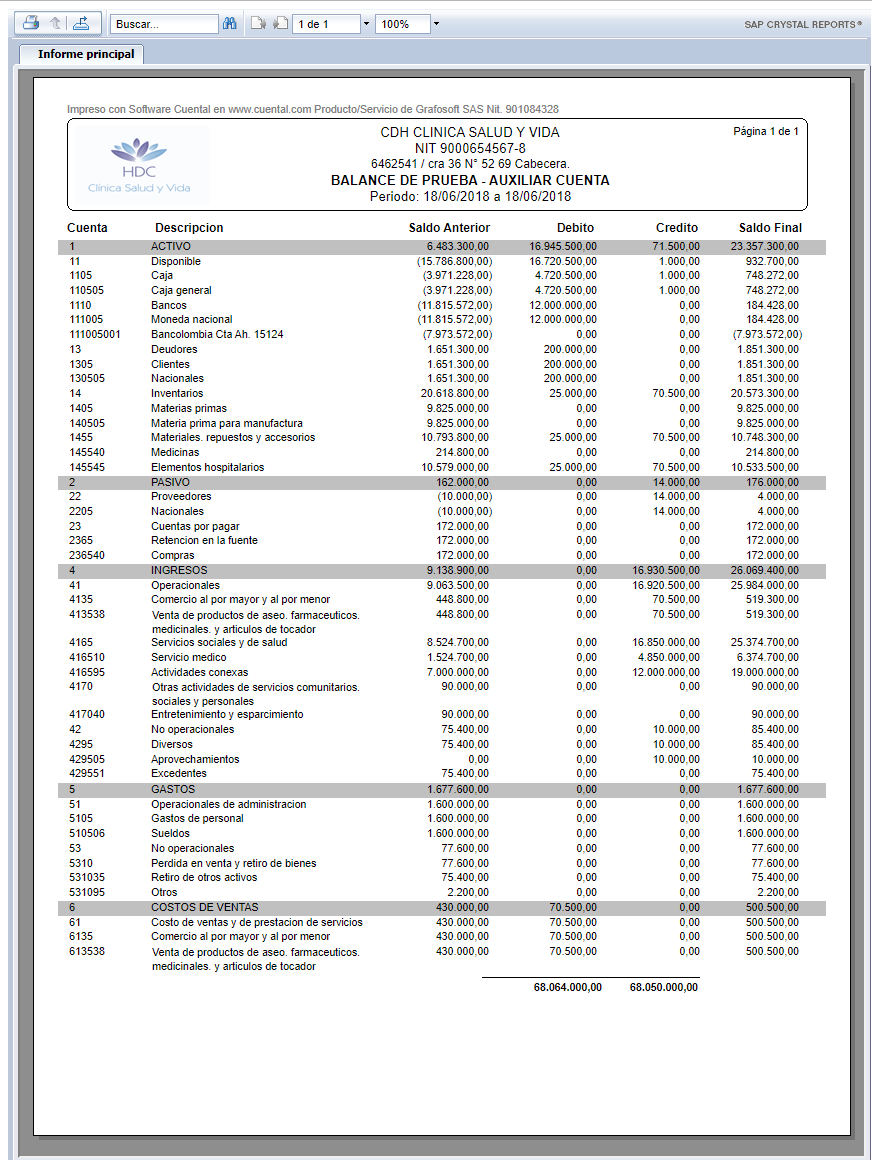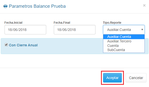 1. Haz clic en el Informe Balance de Prueba.