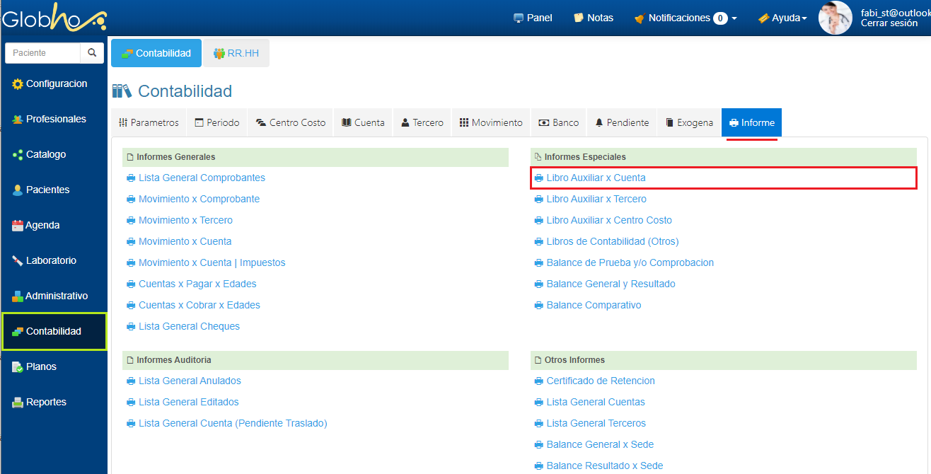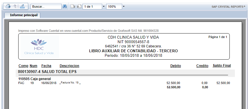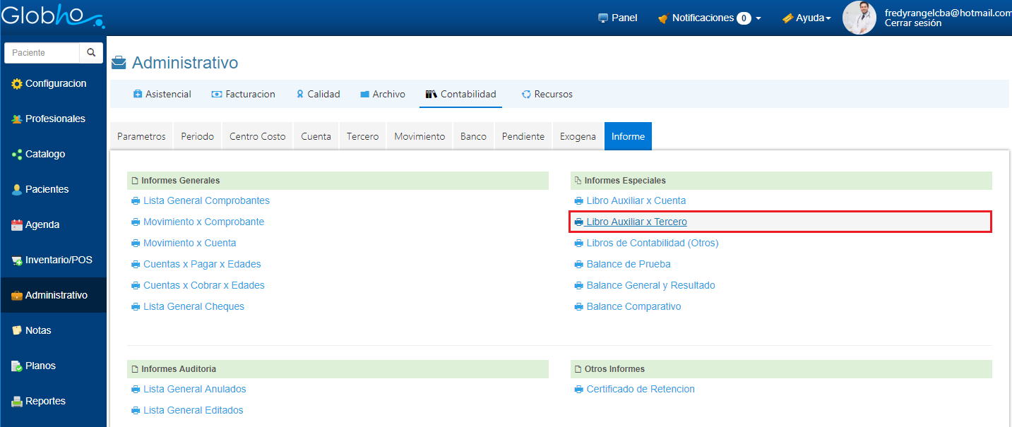 1. Haz clic en el Informe Libro Auxiliar por Tercero