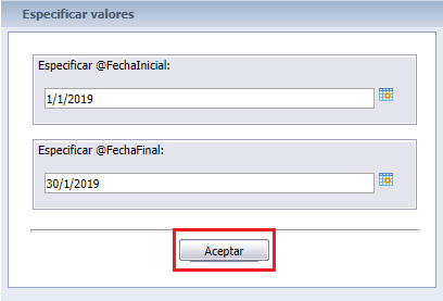 3. Ingresa los rangos de fechas en los que deseas obtener la Información y haz clic en el botón Aceptar.