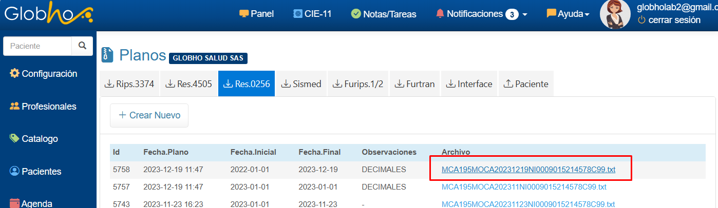 1. El servicio debe ser Agendado con el fin de ser capturado en la generación del plano. 2. Sólo se descargarán los códigos mencionados en la resolución 0256. 3. El rango de fechas debe ser alucivo al rango de fechas de atención. 4.Recuerda haber diligenciado las variables requeridas en la ruta dentro del perfil del paciente. Ver aquí |