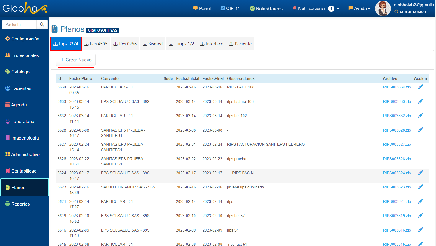 1. Ingresa a la opción Planos en el Menú Principal y a continuación elige la sección Res.3374. Haz clic en el botón Crear Nuevo.