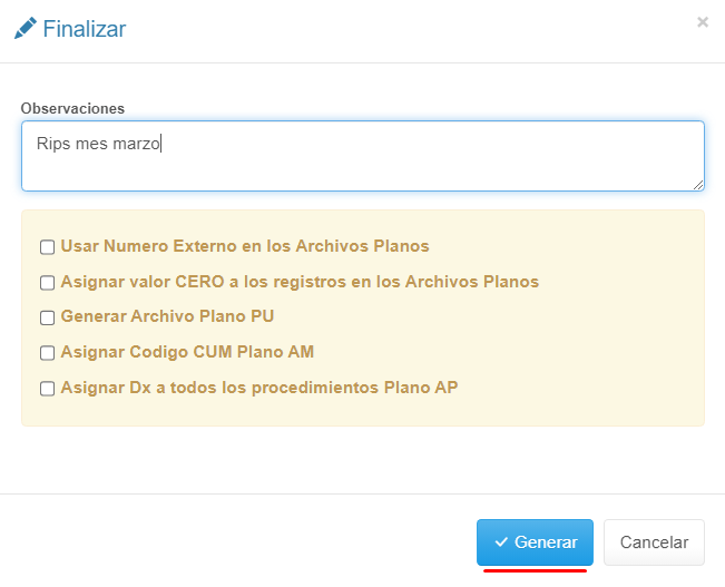 5. Ingresar una Observación administrativa y posteriormente haz clic en el botón Generar.