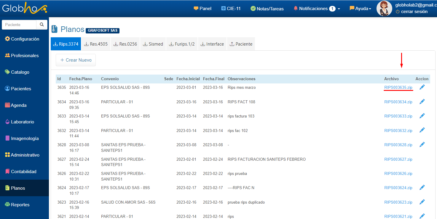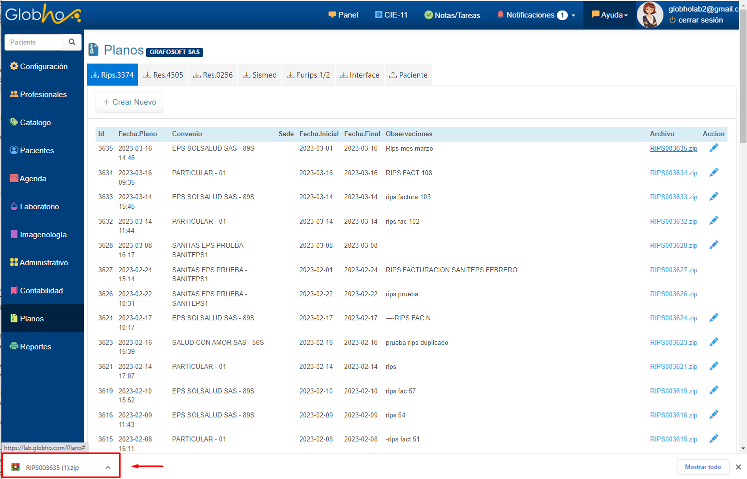6. Haz clic sobre el archivo comprimido para descargar los Archivo Planos.