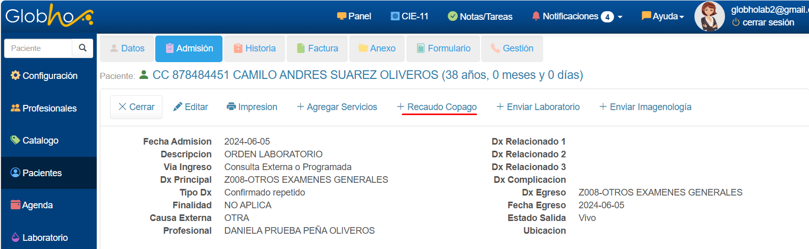 1. Desde el Detalle de la Orden Externa, haz clic en el botón + Recaudo Copago.