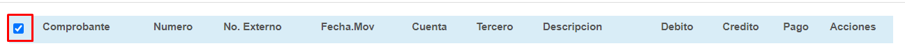 4. Seleciona el o los Comprobantes que vas a cancelar, haciendo clic en la casilla de verificación correspondiente a cada registro y luego haz clic en el botón Aceptar y Continuar.