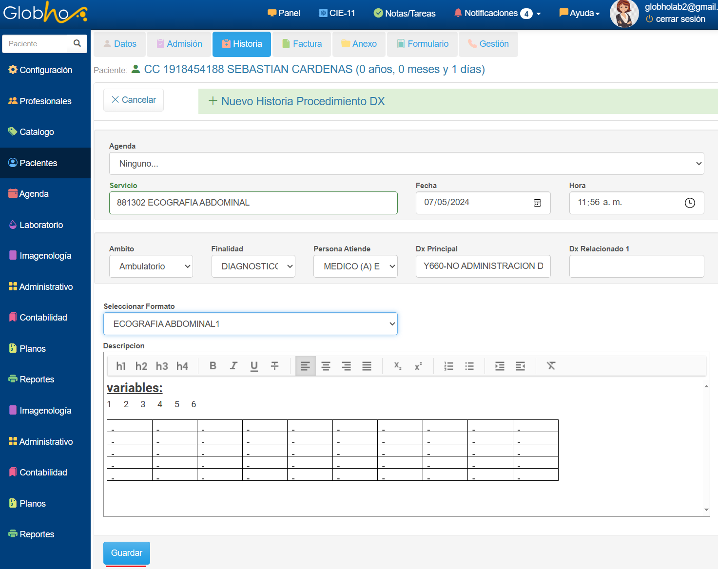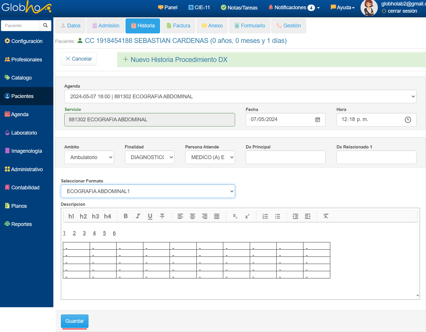 Omite el campo Agenda e ingresa el Servicio cuándo el mismo no este registrado previamente en Agenda ó Admisión. Para seleccionar el Formato de Ayuda Diagnóstica, este debe estar previamente creado. Ver aquí Al finalizar tu Registro de Procedimiento de Diagnóstico haciendo clic sobre el mismo podrás realizar acciones como: Editar e Imprimir. |