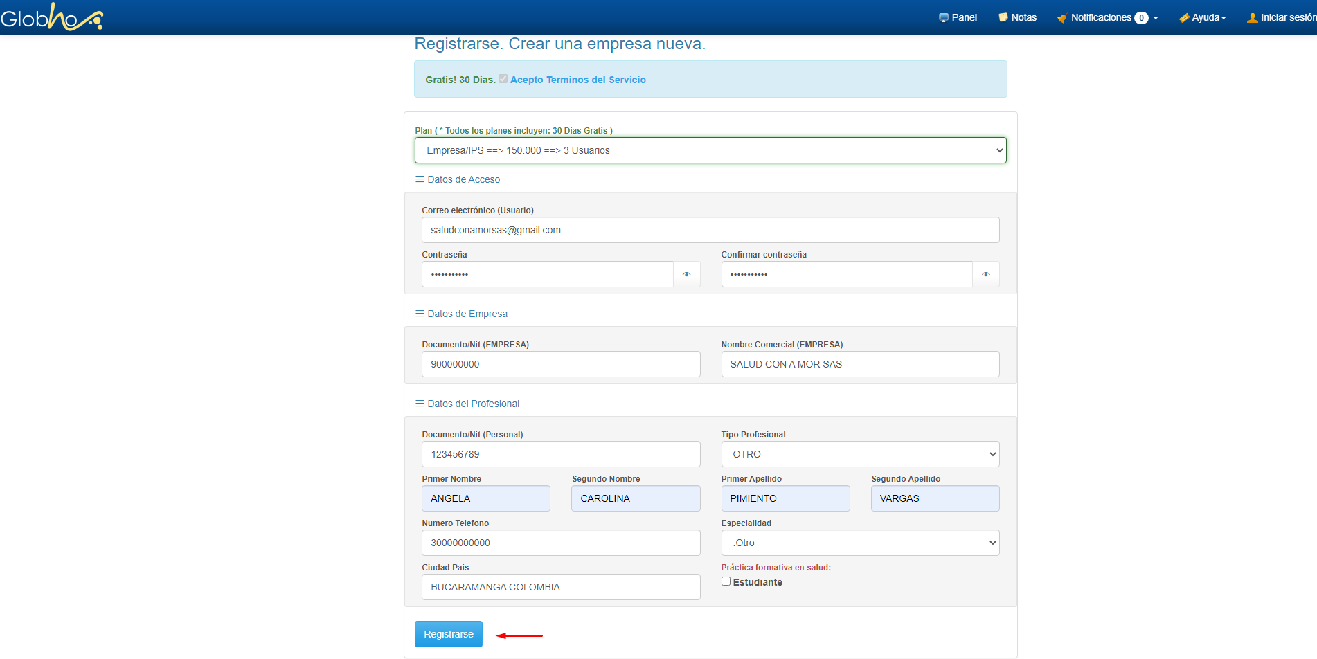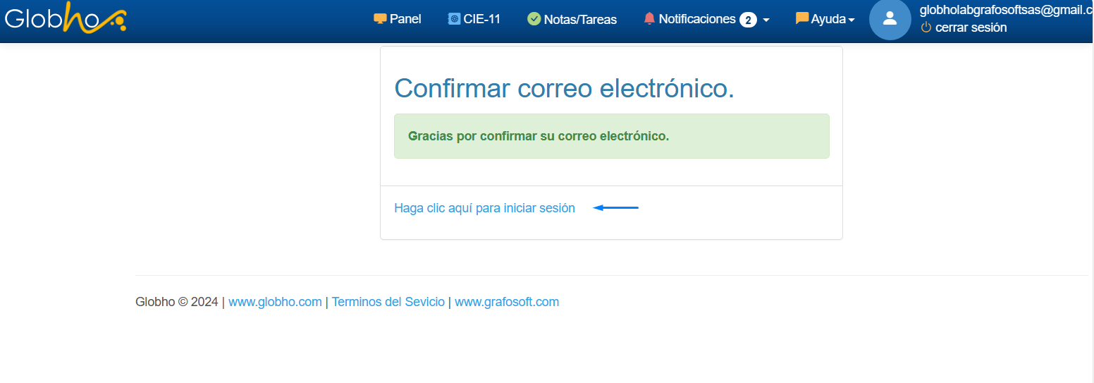 Nota: cada usuario debe contar con un correo de acceso diferente tanto dentro de la misma suscripción, como para apertura de otras empresas en globho.