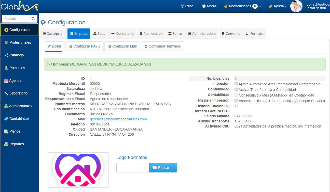 1. Ingresa al módulo Configuración. 2. En la sección Empresa, selecciona el botón Editar.